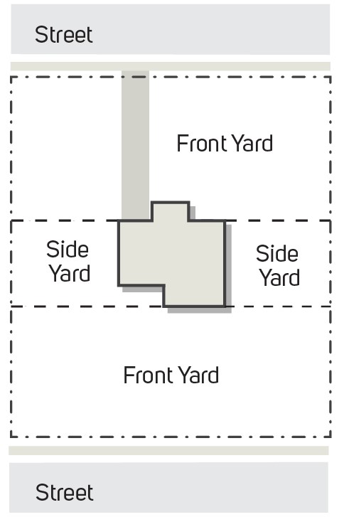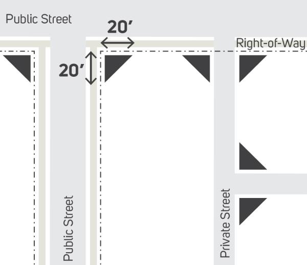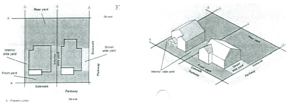 - Principal buildings, streets (public and private), right-of-way lines and property lines;